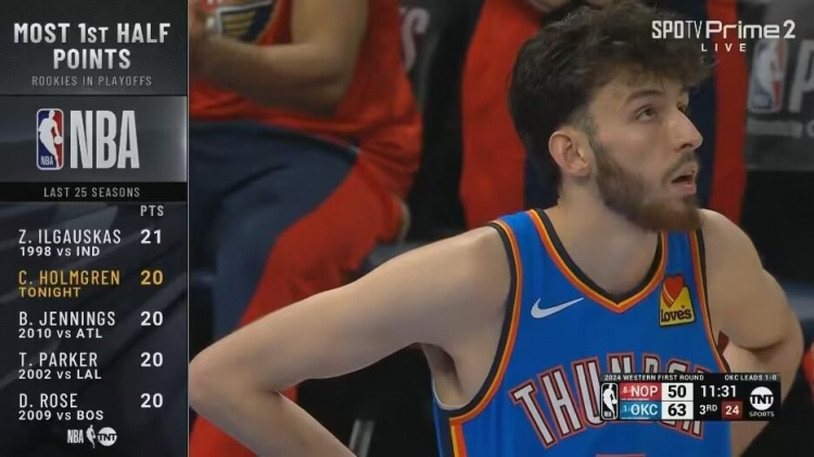 切特上半场20分 近25年季后赛以来新秀并列第二多&仅次于大Z