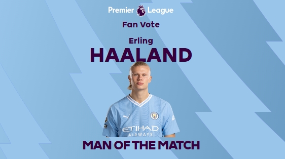 大四喜吃到爽!官方:哈兰德当选曼城vs狼队球迷票选全场最佳