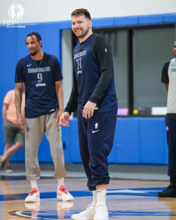 备战西决!独行侠官推晒训练照:东契奇笑得开心 欧文非常认真