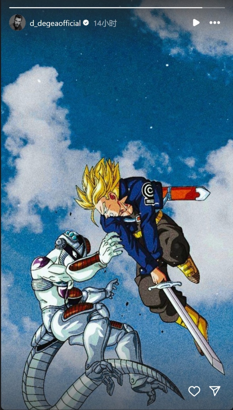 何意?德赫亚社媒晒《七龙珠》特兰克斯击杀弗利萨图片