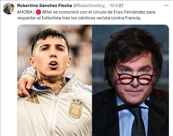 多家阿媒:阿根廷总统米莱致电恩佐,表达对球员的支持