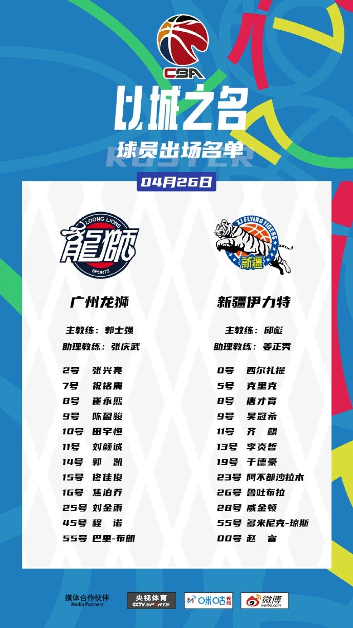 4月26日讯 CBA季后赛1/4决赛,新疆VS广州的G4将在稍后开始。