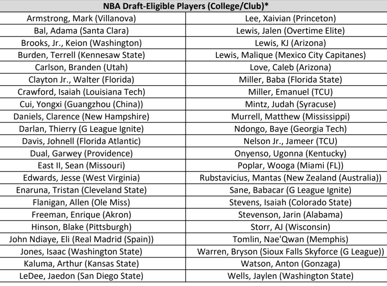 G联盟精英训练营的44名球员将从5月12日开始为期2天的混合试训,至少会有6名表现优异的球员进入5月中旬芝加哥的新秀联合试训。