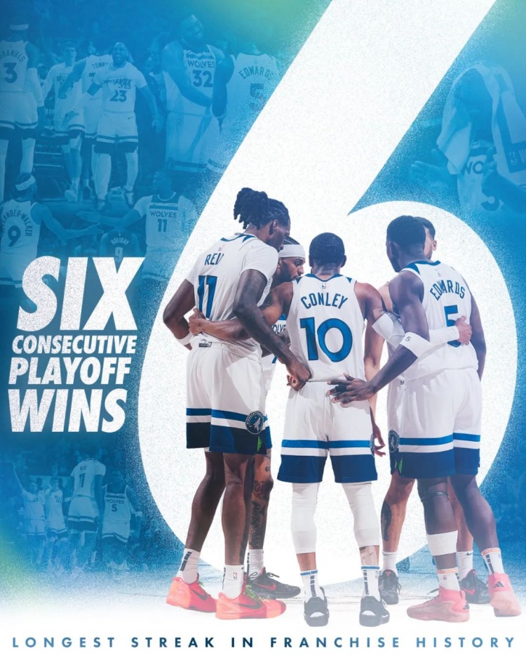 半决赛的两场比赛,掘金的运动战命中率从49.2%降到了40.5%。整个季后赛,森林狼是让对手运动战命中率降低幅度第4多的球队,而且我们还要考虑到他们先打了太阳又打了掘金,在这种高水平的对话下,狼队防守的含金量也许不止联盟第4。