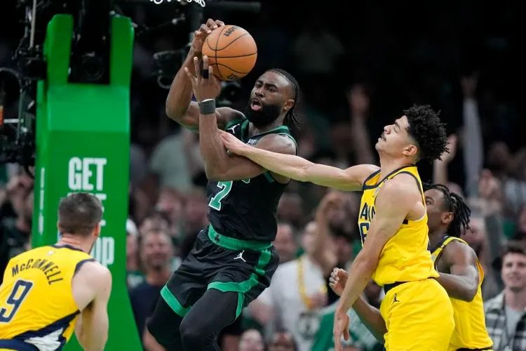 第二节最后霍福德不在,塔图姆站空间5时,步行者篮下空荡荡,杰伦立刻弧顶突破西亚卡姆上篮。第三节打了半节,凯尔特人领先7分,普里查德和布里赛特再上场,塔图姆站了半节中锋,步行者有点迷惑,只好用托平和特纳两长人,轮流对凯尔特人双杰锋卫。