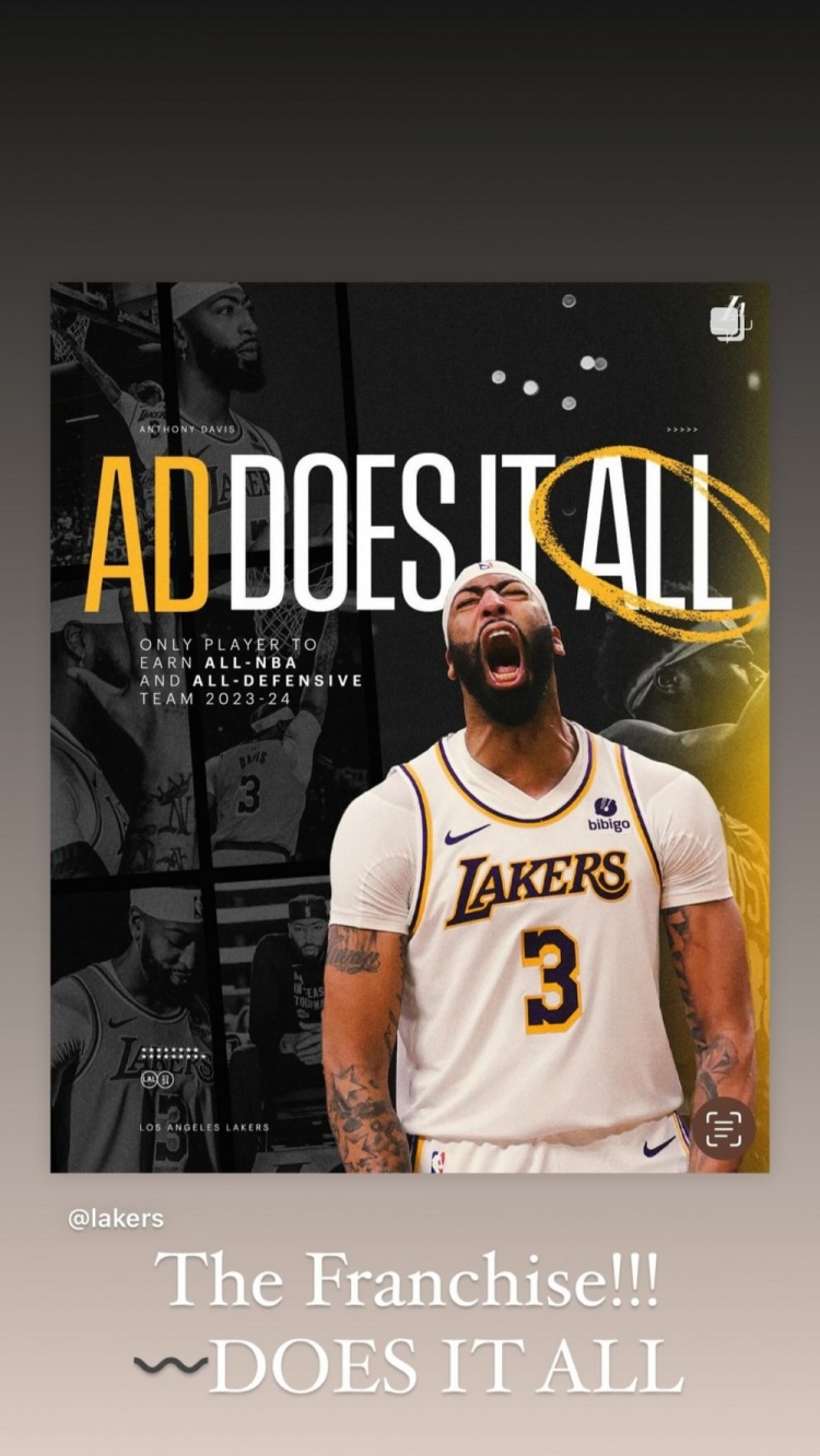 AD入选最佳阵和最佳防阵本赛季唯一!詹姆斯:他做到了一切!