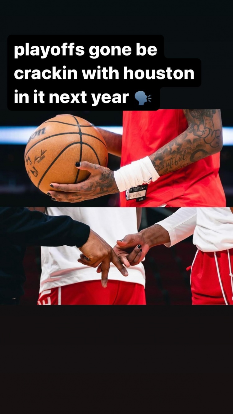 杰伦-格林更新动态:下赛季拥有火箭的季后赛将会非常精彩!