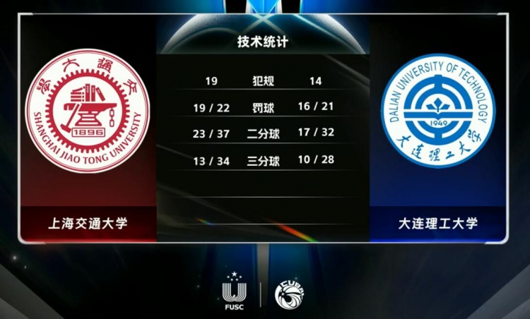 首节对决上海交大在和对手僵持半节时间后逐渐占据上风,顿家威的三分吹响球队进攻号角,随后陈天灿和胡汇相继命中三分,上海交大用一波23-11的攻势直接拉开两位数分差,大连理工节中一度近3分钟里拿到2分导致首节落后12分。