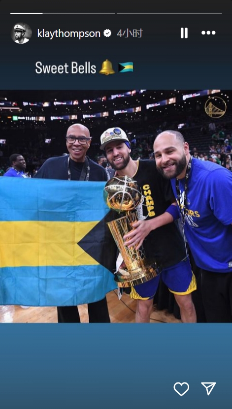 今天也是美国时间的父亲节,克莱更新了Instagram,晒出2022年今天夺冠之后,他跟哥哥、爸爸的合影,合影中汤爹还拿着故乡巴哈马的国旗。