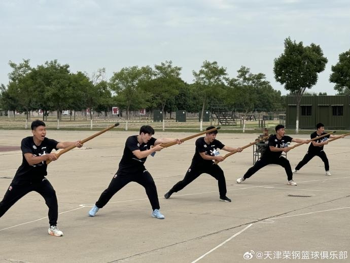 天津男篮官博配文写道:“军训归来!天津先行者完成了为期8天的全封闭式军训并进行了汇报演出。”