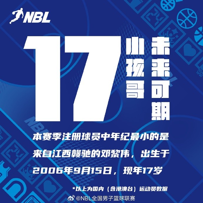 本赛季NBL联赛注册球员中年龄最大(李林,36岁)和最小(邓黎伟,17岁)的均来自@江西赣驰篮球俱乐部