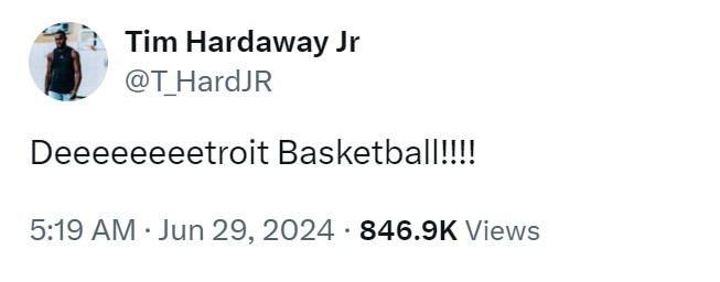 6月29日讯 据名记Woj报道,独行侠将小哈达威+3次轮送往活塞换回格莱姆斯。