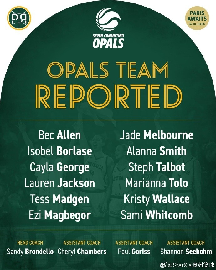 7月6日讯 今日,澳大利亚官方公布了巴黎奥运会女篮12人大名单。