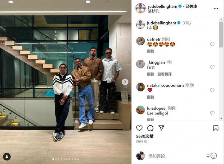 好兄弟!贝林厄姆社媒晒与阿诺德在洛杉矶度假合照