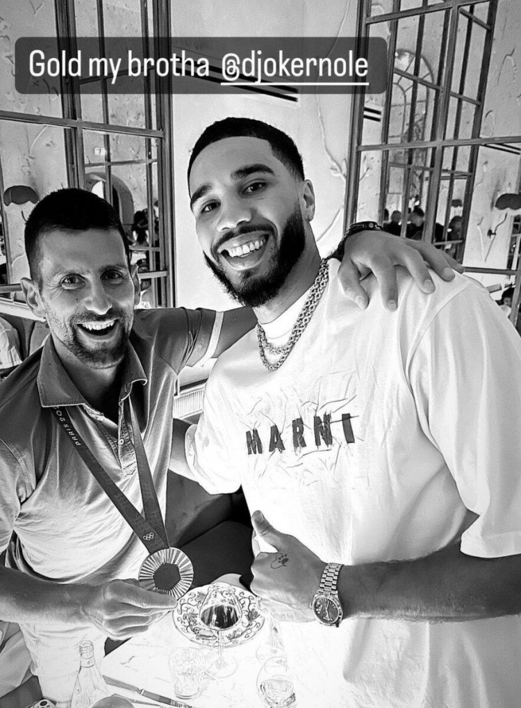 8月6日讯 今天,塔图姆更新了自己的社媒晒出了与网球名将德约科维奇的合影。