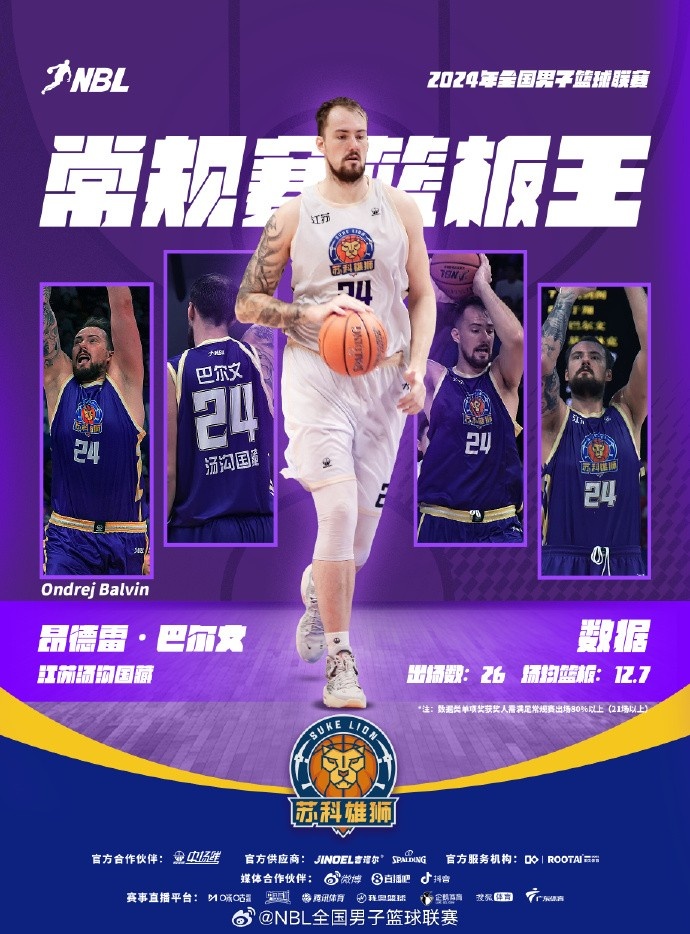 江苏汤沟国藏的昂德雷-巴尔文26场比赛全勤,打满整个常规赛,2米18的身高让他在防守端游刃有余,场均摘下12.7个篮板,斩获本赛季常规赛篮板王称号!