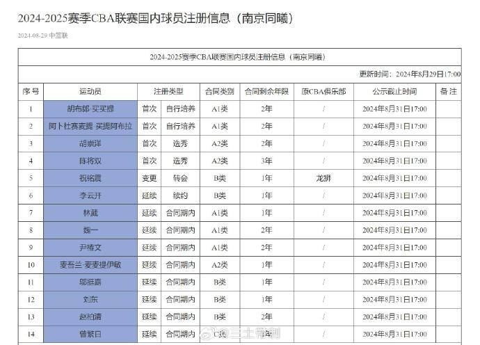 8月29日讯 今天,CBA官方更新了新赛季同曦男篮注册信息。