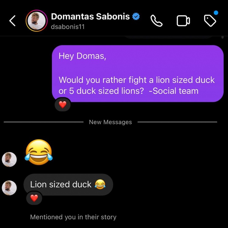 莱尔斯表示无语,而除了科尔比-琼斯外,所有人都选择了单挑狮般大小的鸭子。