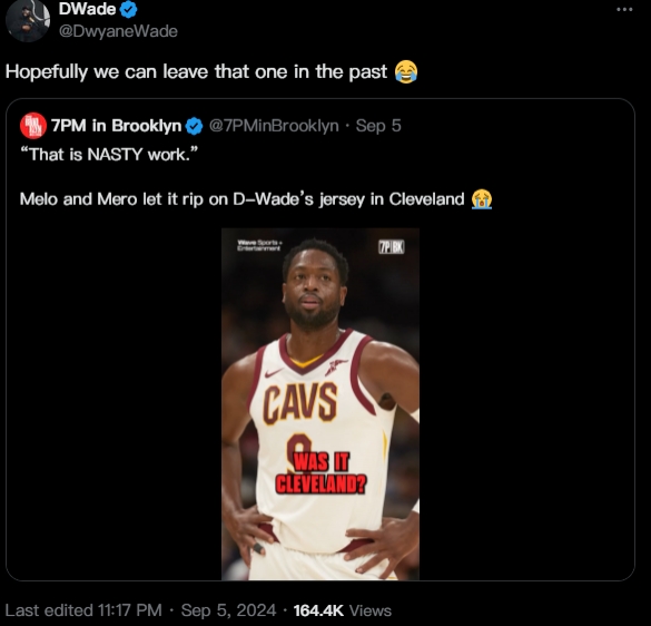 今日,韦德再次转发了这则新闻并配文写道:“希望我们能把这件事抛在脑后哈哈。”
