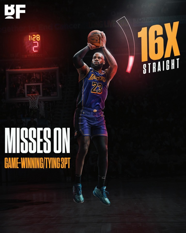 詹姆斯上次命中这种关键三分还是在2021年2月