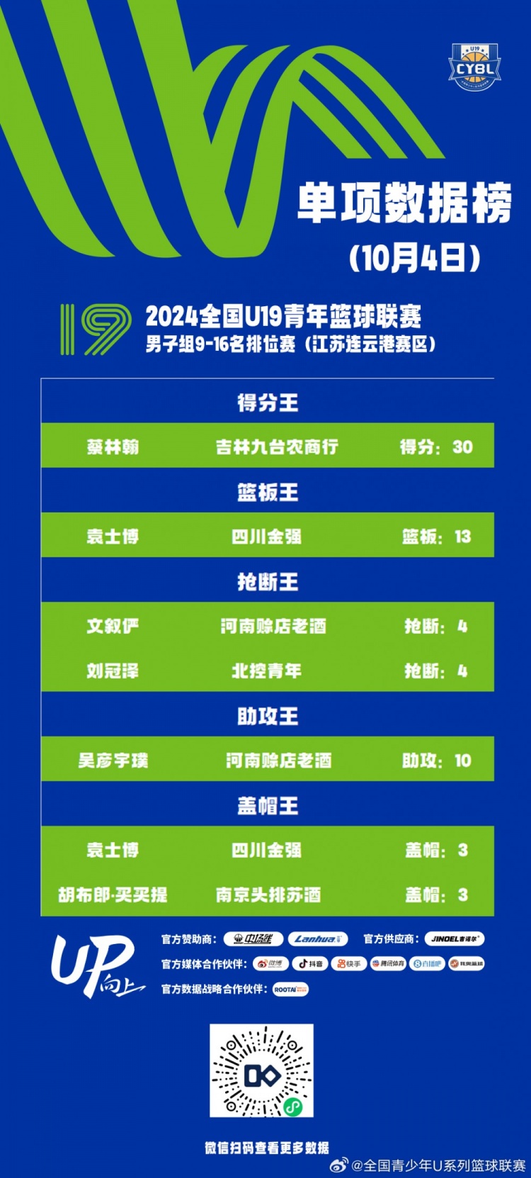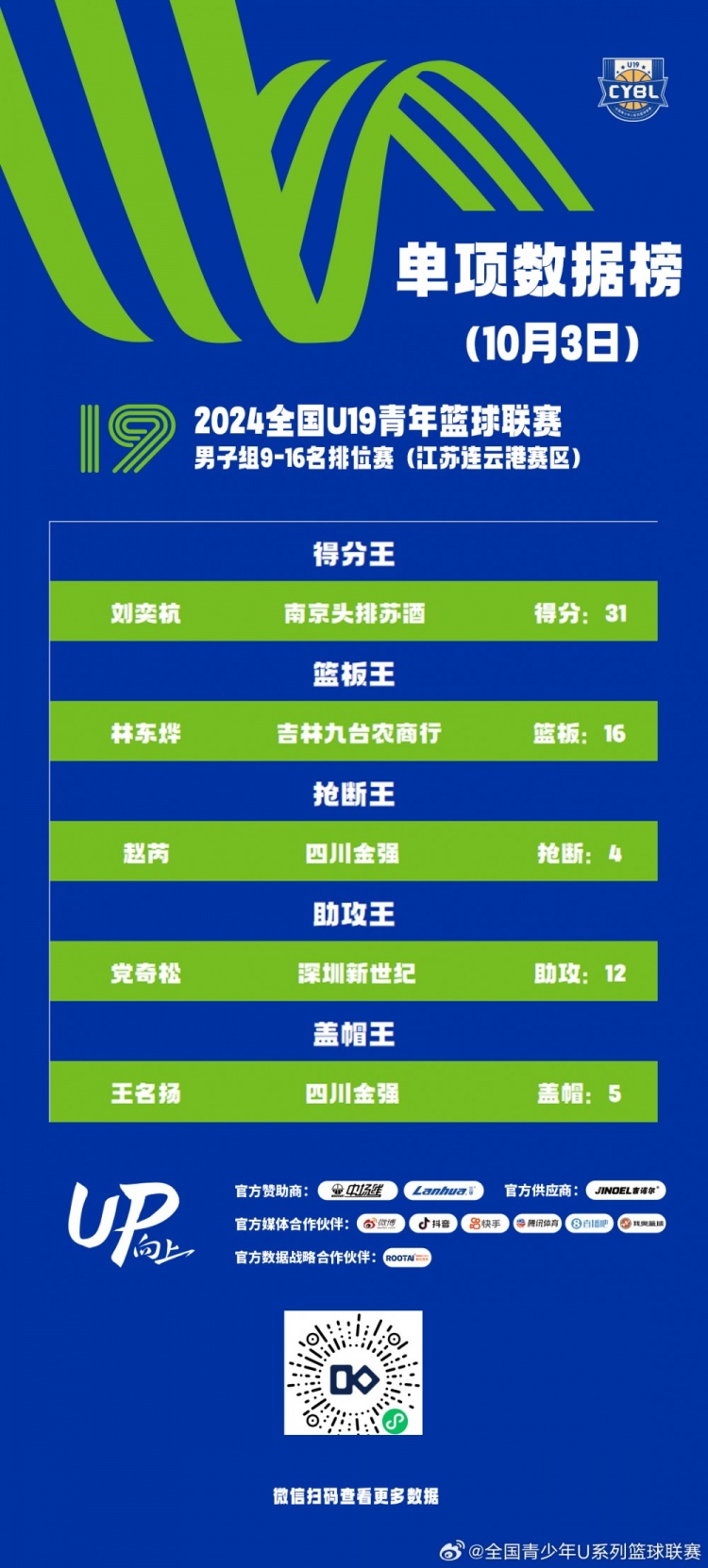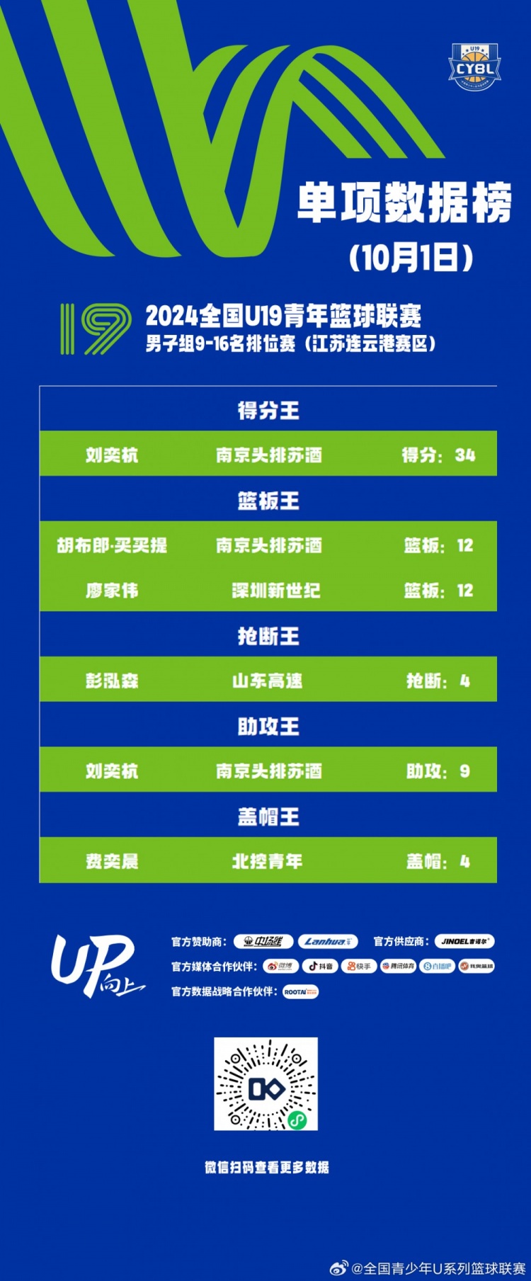 【单项数据榜】2024年#全国U19青年篮球联赛# 男子组第二阶段9-16名排位赛(江苏连云港赛区)(10月1日-7日)单项数据王名单⬇️