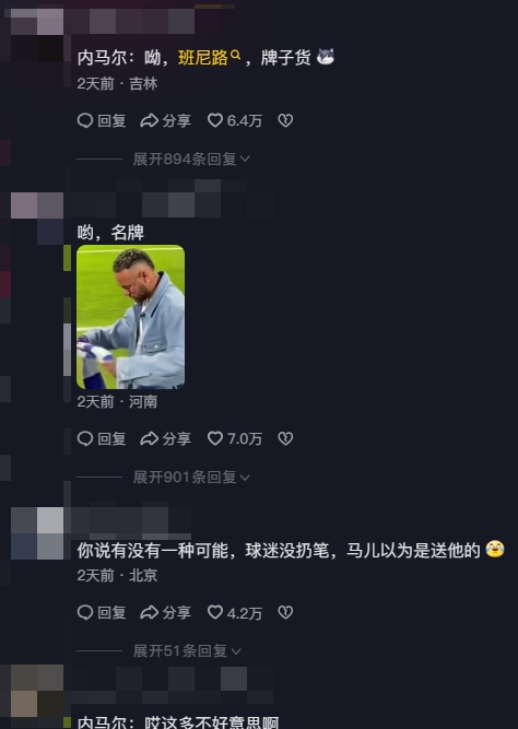 有网友猜测,这位球迷是想让内马尔在围巾上签名,不过...