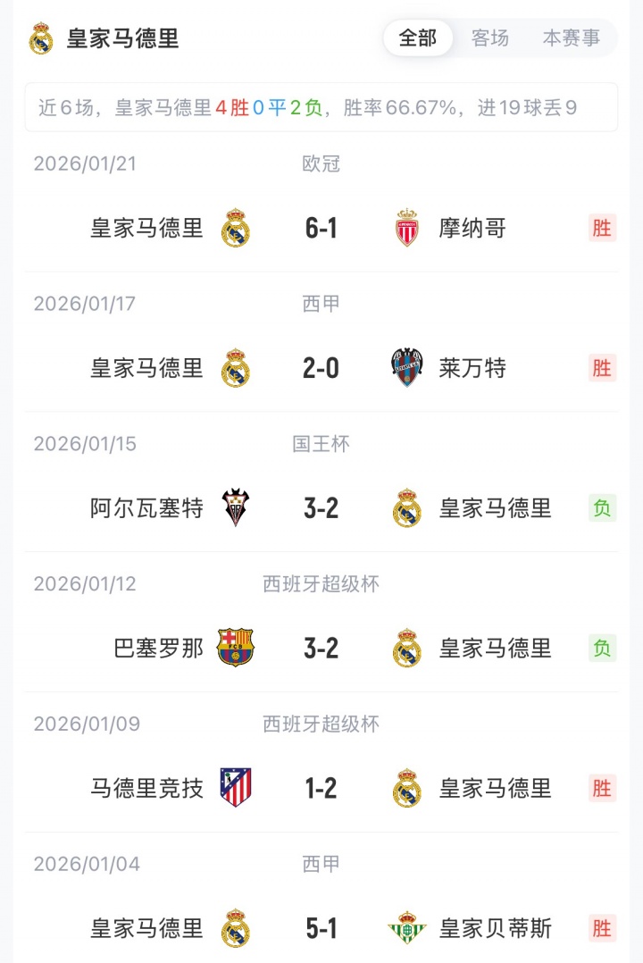 【近期战绩】