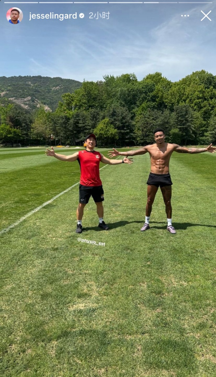在训练照中,林加德已经可以做一些基本的有球训练,他赤裸上身,大秀结实肌肉。