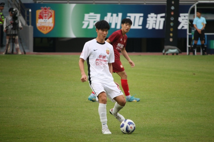 2024中乙联赛第7轮,泉州亚新1比2上海海港B队。比赛一开始,海港B队就发起猛烈攻势。第10分钟,我方利用前场逼抢造成对方后卫的失误,在对方禁区内拿到球权,廖重九送出一脚横敲,赵申澳顺势推射破门。