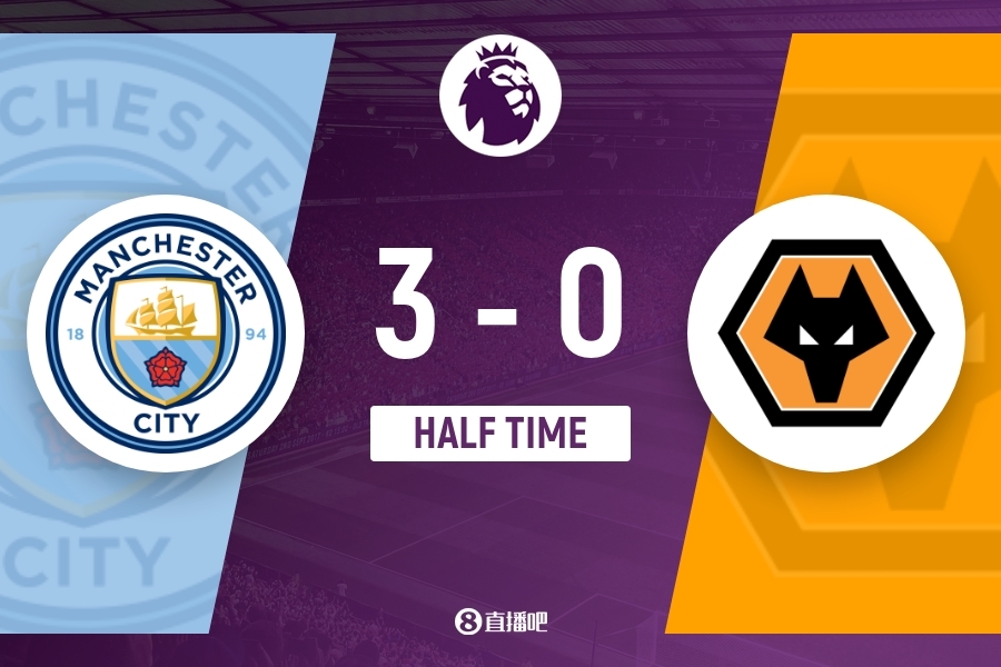上半场补时4分钟。半场战罢,曼城3-0狼队。