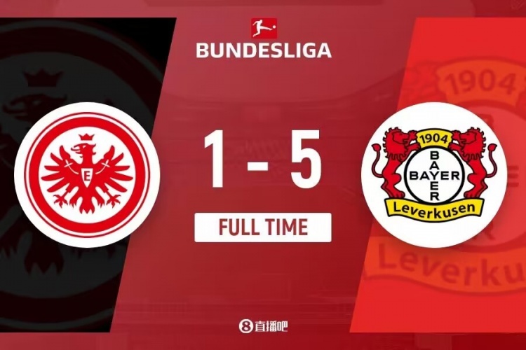 德甲第32轮,勒沃库森客场5-1大胜法兰克福,赛季48场不败。