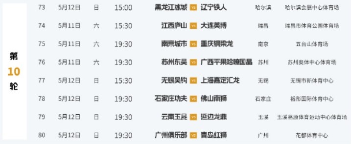 5月8日讯 中甲联赛官方消息,中甲第10轮黑龙江冰城vs辽宁铁人调整至5月12日进行。