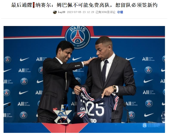 2023年7月,在新帅恩里克的亮相仪式上,巴黎主席纳赛尔被问到姆巴佩的问题。