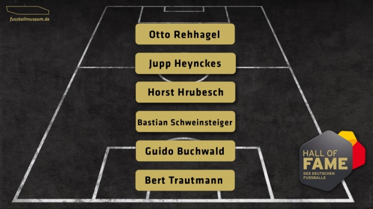 本次德国足球名人堂新增的成员为已故的传奇门将伯特-特劳特曼、90年世界杯冠军成员布赫瓦尔德、14年世界杯冠军成员施魏因斯泰格、80年欧洲杯冠军功臣赫鲁贝施、希腊奇迹缔造者雷哈格尔、拜仁三冠王教头海因克斯。