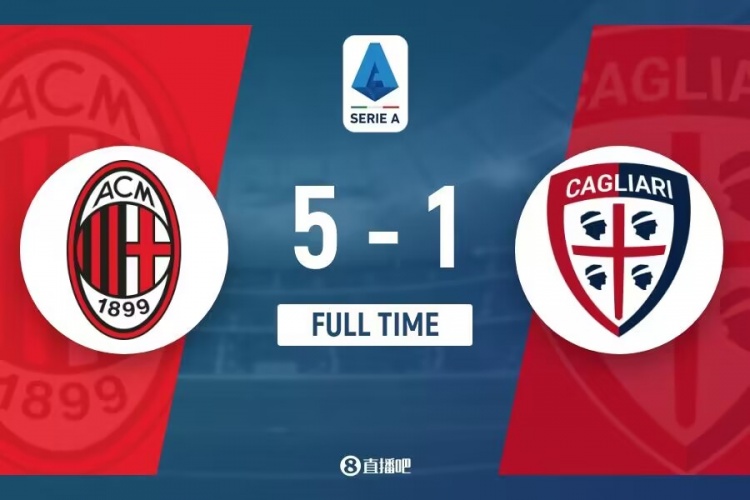 普利西奇双响、莱奥破门,AC米兰5-1击败卡利亚里,终结4轮不胜。