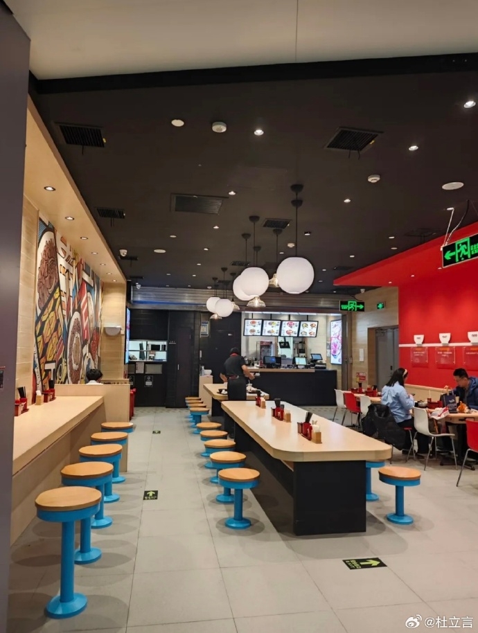 杜立言:“网传周定洋和提莫今天中午一起吃面。网传图片(图一)应该是在天府机场的食其家拍摄的(说明不是今天的图),从图二可以看得非常清晰。