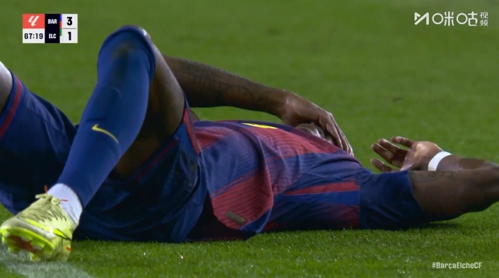 11月03日讯 西甲第11轮巴萨vs埃尔切,比赛第67分钟,拉什福德尝试突破时与对方防守球员相撞,随后他痛苦倒地,但裁判并未吹罚犯规。