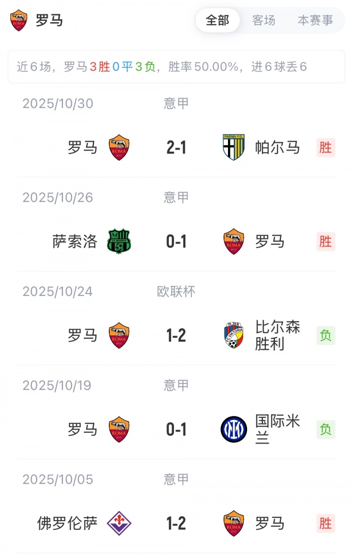 罗马首发:99-斯维拉尔、22-埃尔莫索、23-曼奇尼、5-恩迪卡、19-切利克、8-艾纳维、17-科内、43-韦斯利、18-苏莱、4-克里斯坦特、21-迪巴拉