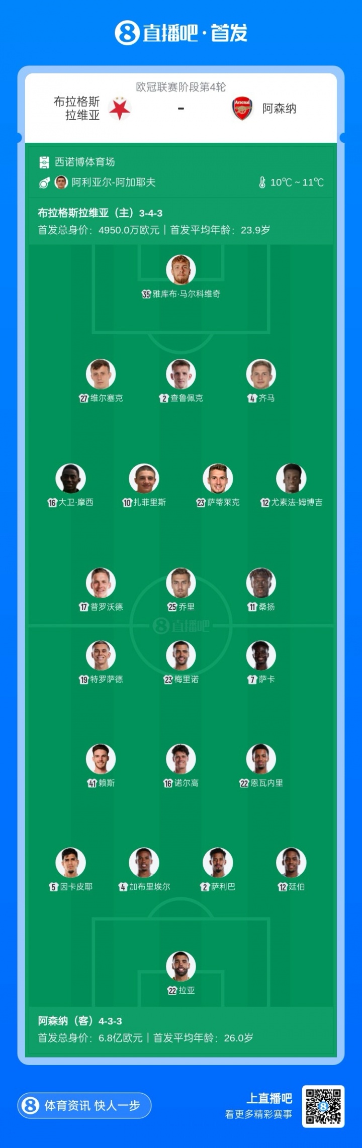11月05日讯 欧冠第4轮,阿森纳将客战布拉格斯拉维亚,赛前枪手已经公布了本场比赛的首发名单。