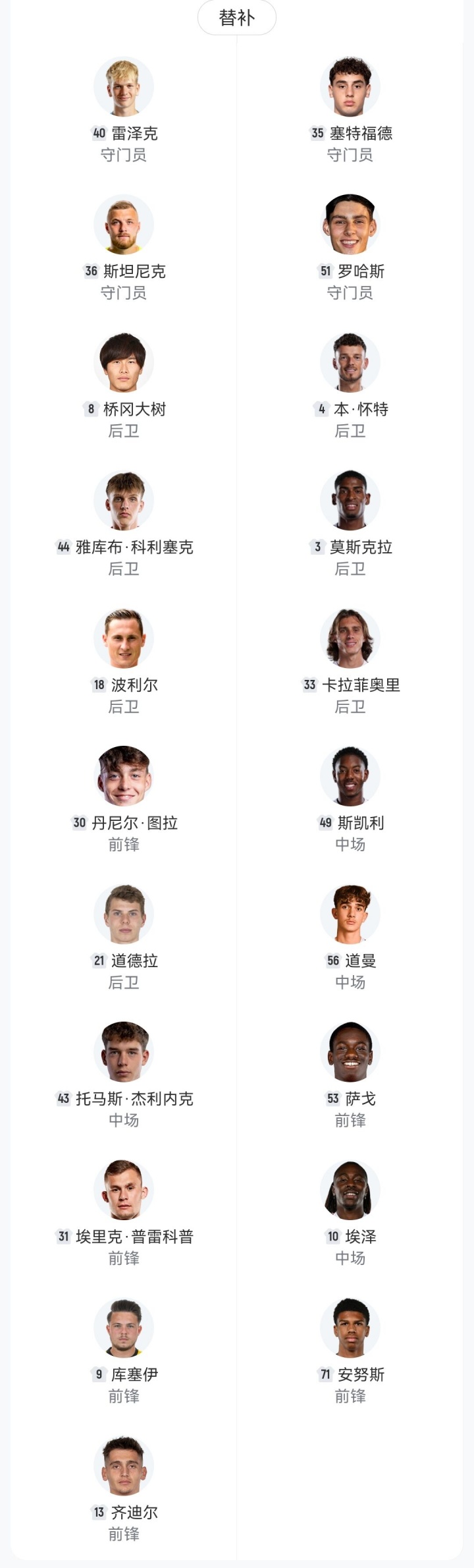 本场比赛,枪手在替补席上选择了多名青训小将,包括15岁的新星道曼。