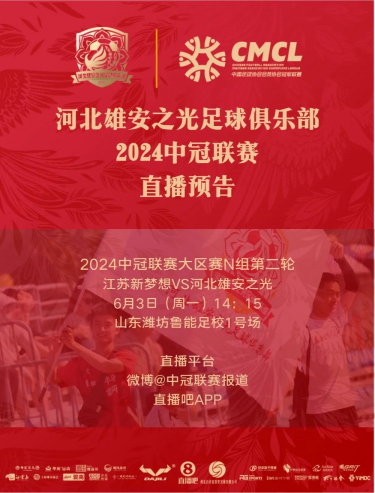 与此同时,大家可以通过线上直播(微博:中冠联赛报道;)观看比赛直播,为雄安之光加油呐喊!