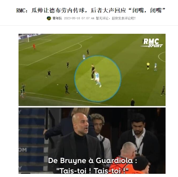 2023年欧冠对阵皇马,瓜迪奥拉要求德布劳内踢得更一致,球员回应:“闭嘴,闭嘴!”。在比利时国家队,如果比赛不符预期,德布劳内也会失去耐心。