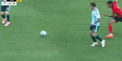 第18分钟,阿根廷前场断球,梅西接队友直塞面对门将打门被扑。↓