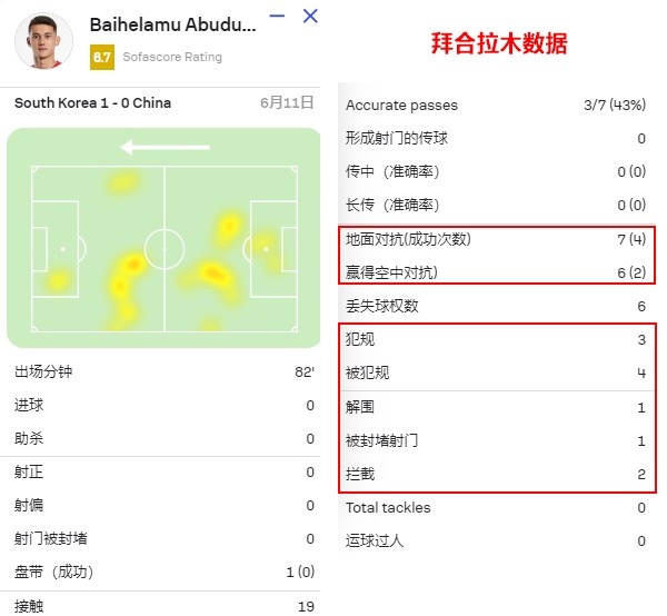毕竟在跟韩国队的比赛中,拜合拉木也证明了自己的对抗很不错。13次一对一对抗赢下6次,制造对手4次犯规。虽然一名前锋总在防守端出现,不过拜合拉木在攻防转换时的推进作用,不只是给球队带来帮助,也是在给自己积累经验。