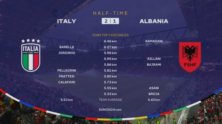 6月16日讯 正在进行的欧洲杯小组赛首轮,意大利暂2-1半场领先阿尔巴尼亚。