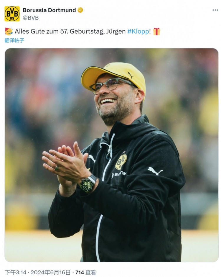 6月16日讯 今天是德国教练克洛普的57岁生日,利物浦、多特官方为他送上祝福。