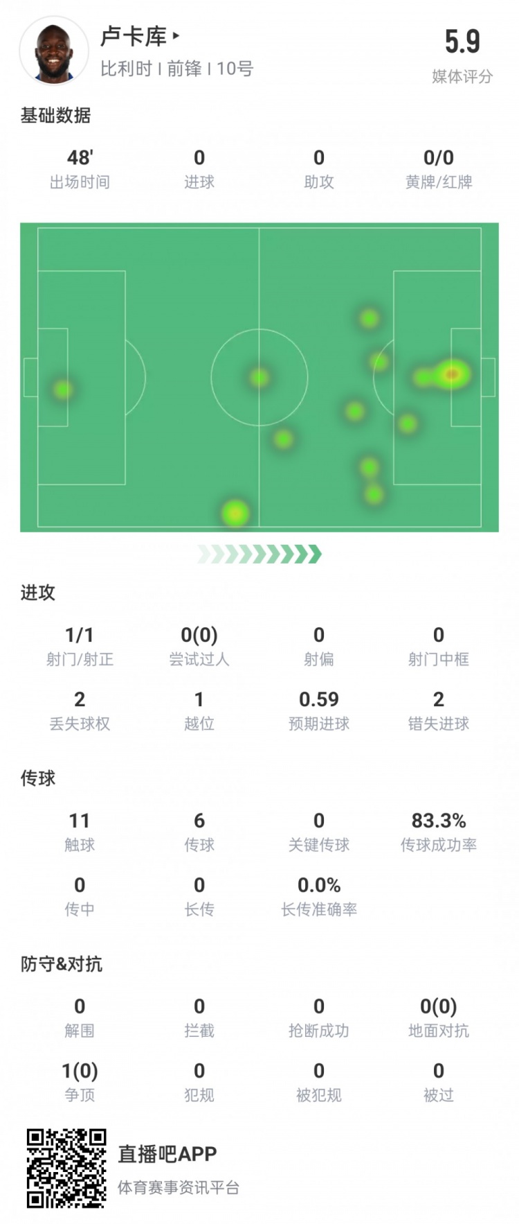 6月18日讯 欧洲杯小组赛E组第1轮,比利时对阵斯洛伐克,上半场卢卡库屡失良机,半场数据如下。