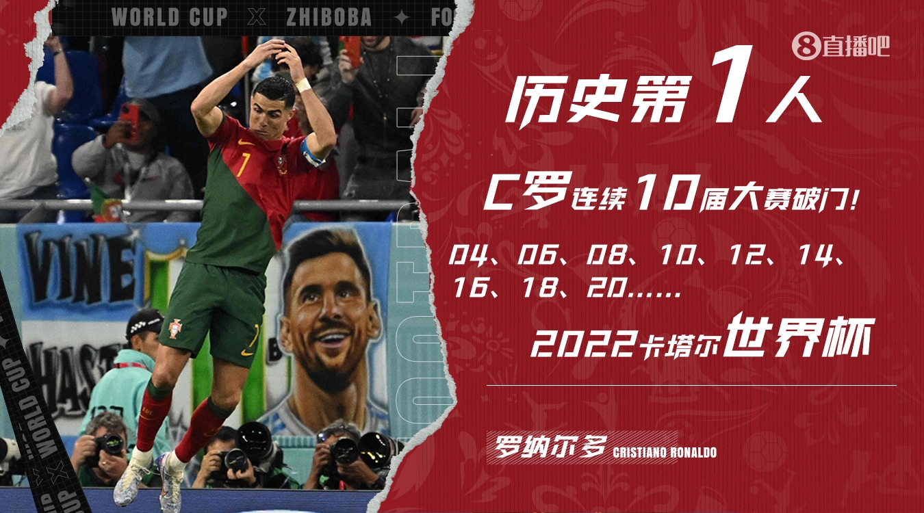 C罗生涯已参加过10届大赛(欧洲杯、世界杯),并且在每一届杯赛都取得进球。如果本届欧洲杯进球,他将成为连续11届大赛破门的第一人。