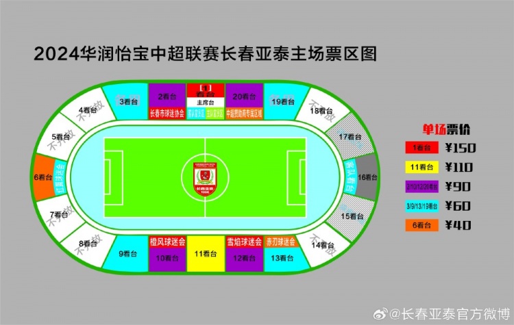 2台、6台、10台、12台、13台前排为在俱乐部官方备案的球迷协会专属区域,此区域由各球迷协会在遵守俱乐部相关要求的前提下进行自管,请持零售年卡和单场零售票的球迷入座时避开此区域;1看台售票区域为主席台上方,主席台下方为中超联赛官方区域,不对外售票。