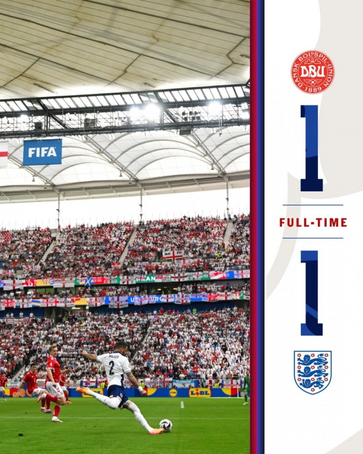 英格兰队官推:不是我们想要的结果,但我们离晋级更近了一步